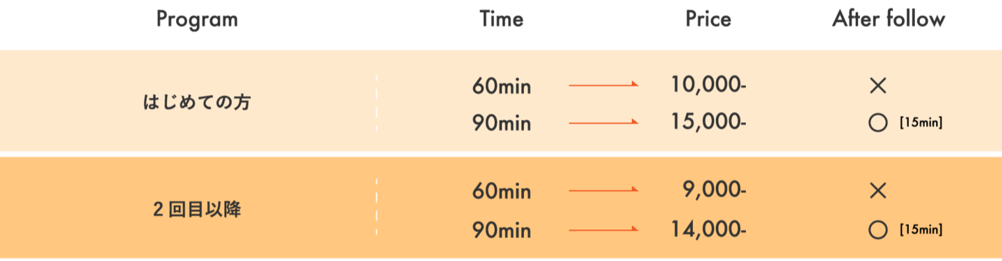 ※アフターフォローカウンセリングの時間は、プログラムにより異なります 。